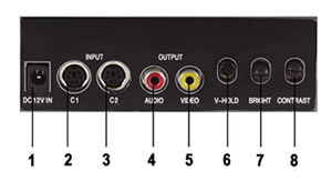 Possibilité d’utiliser chaque caméra pourvue de connecteurs mâles RCA avec 2 câbles en option (mâles mini-DIN vers 2 x RCA femelle / longueur : 15cm (réf. DINRCA)