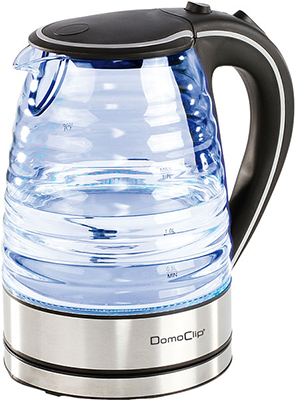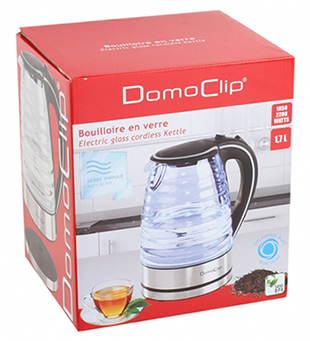 Cette jolie bouilloire DomoClip DOD128N sans fil repose sur son socle en acier inoxydable en attendant de vous chauffer de l’eau ! Pivotante à 360°, vous pouvez la prendre et la reposer dans n'importe quel sens ! Et avec son corps en verre ondulé, cette bouilloire est très originale et tellement design !