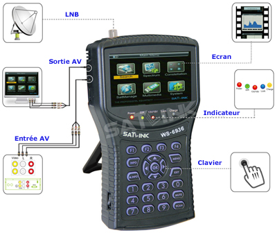 Ce mesureur de champ déstiné au réglage des antennes satellites et TNT, il propose le tout en un : satellite et terrestre, grace à ses multifonctionnalités il vous est désormais possible d'afficher le canal sur l'écran, de régler rapidement votre antenne et de vérifier la stabilité du signal: transpondeurs, fréquence, polarité.