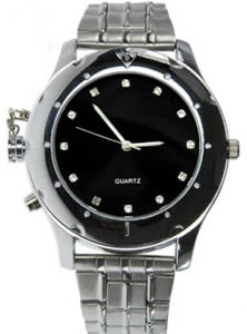 Cette montre espion d’aspect normal est un petit bijoux technologique doté d’une mémoire de 8 go ce qui correspond à environ 14 heures d’enregistrement audio et vidéo,et d’un micro intégré